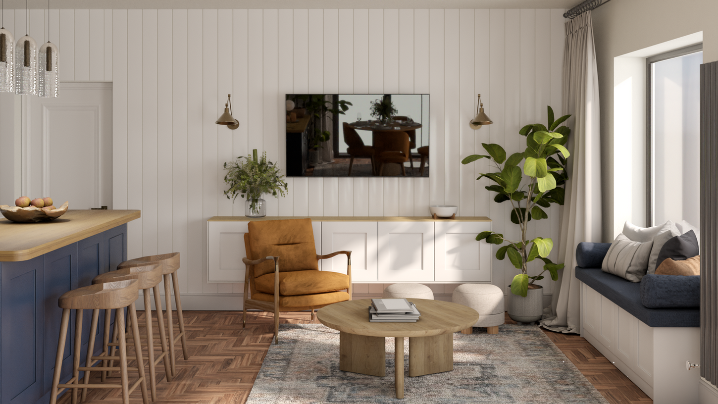 Our recent project, Earth Inspired Living Room, demonstrates our expertise in visualizing and styling. We worked closely with our client to bring their concept to life, showcasing a living room inspired by the earth, featuring a stunning green ceiling.